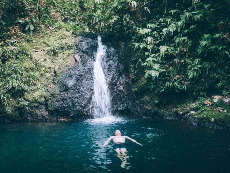 Después de la pausa refrescante seguimos adentrandonos en la selva hasta encontrar en medio del bosque una pequeña cascada con su respectiva piscina natural de aguas cristalinas. Ahí estaba ella esperándonos para reconfortarnos despues del esfuerzo…